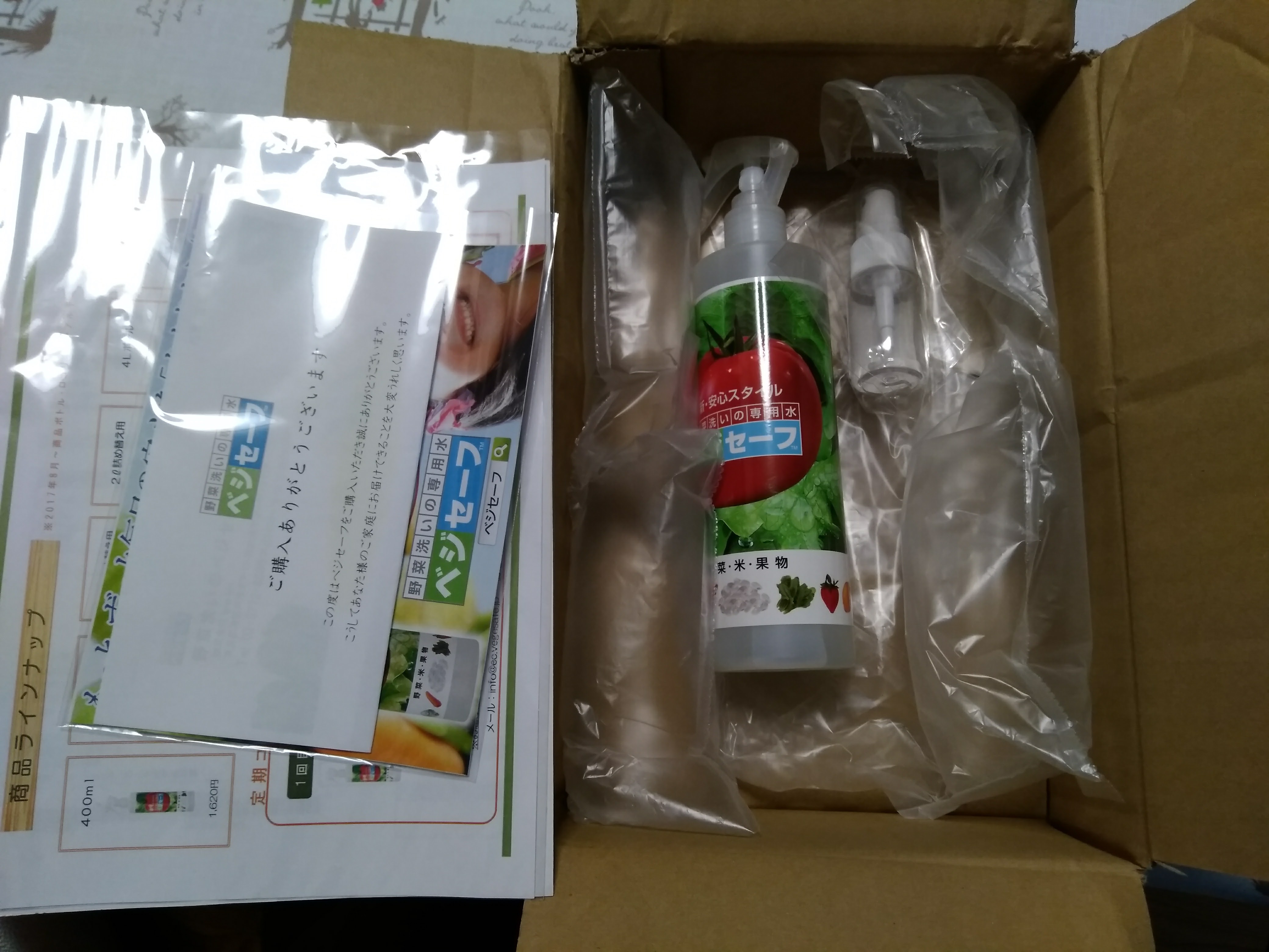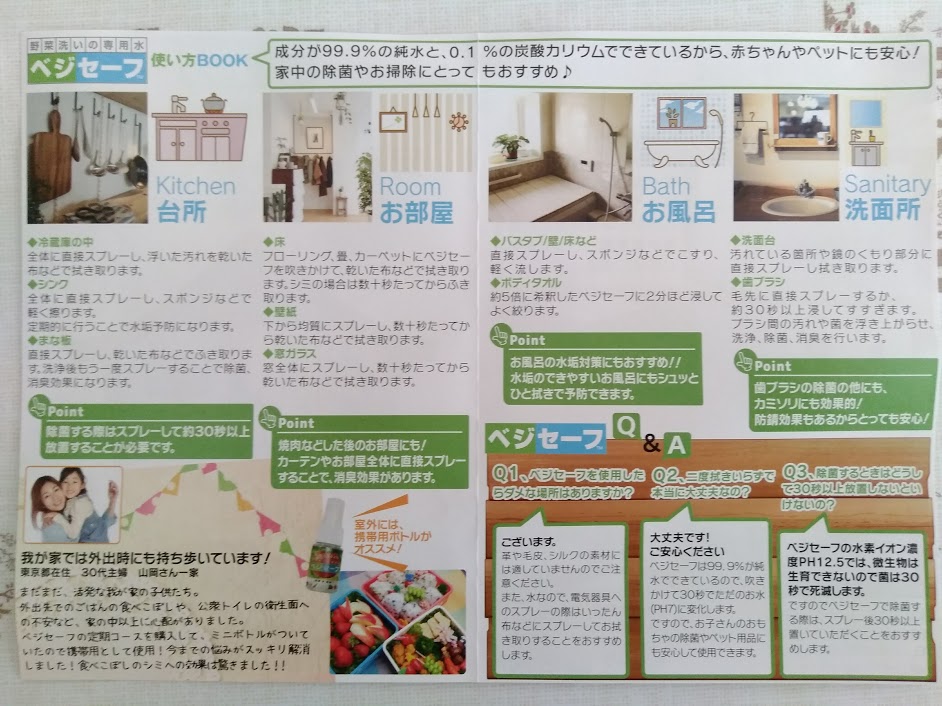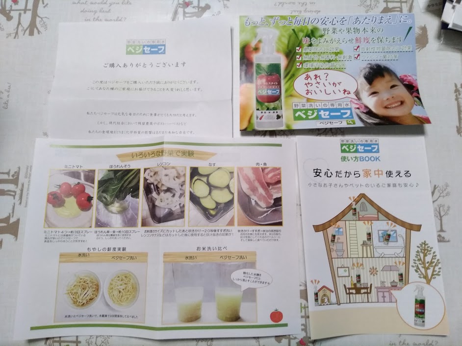 ベジセーフの使い方の説明が書かれたパンフや