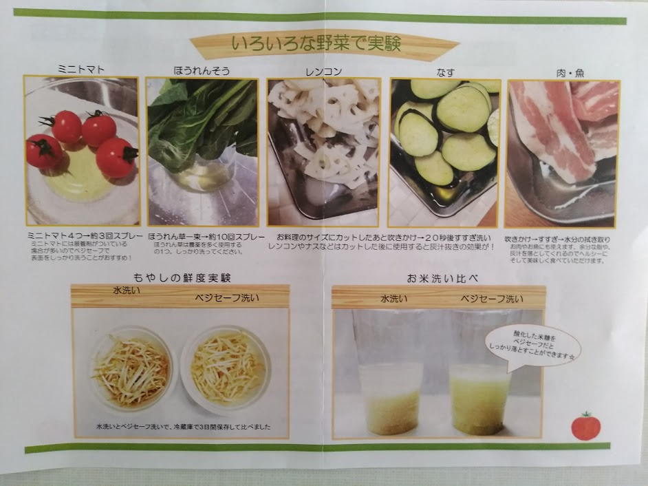 野菜などの食材にベジセーフを使うとこんな感じになりますよ的な内容が書かれたモノがありました。